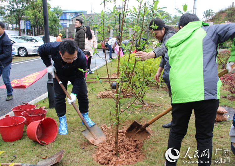 人民網(wǎng)南寧3月11日電 陽(yáng)春三月,萬(wàn)物復(fù)蘇,生機(jī)勃發(fā)。3月9日,細(xì)雨紛飛,春寒料峭,但是南寧經(jīng)開(kāi)區(qū)的綠港·國(guó)際中心卻人潮涌動(dòng),愛(ài)意濃濃。原來(lái),南寧綠港集團(tuán)正在舉行“情暖童心·攜手植綠”學(xué)雷鋒志愿服務(wù)月活動(dòng),200多名職工和家屬一起參加了當(dāng)天的愛(ài)心義賣(mài)、愛(ài)心捐贈(zèng)和義務(wù)植樹(shù)活動(dòng)。