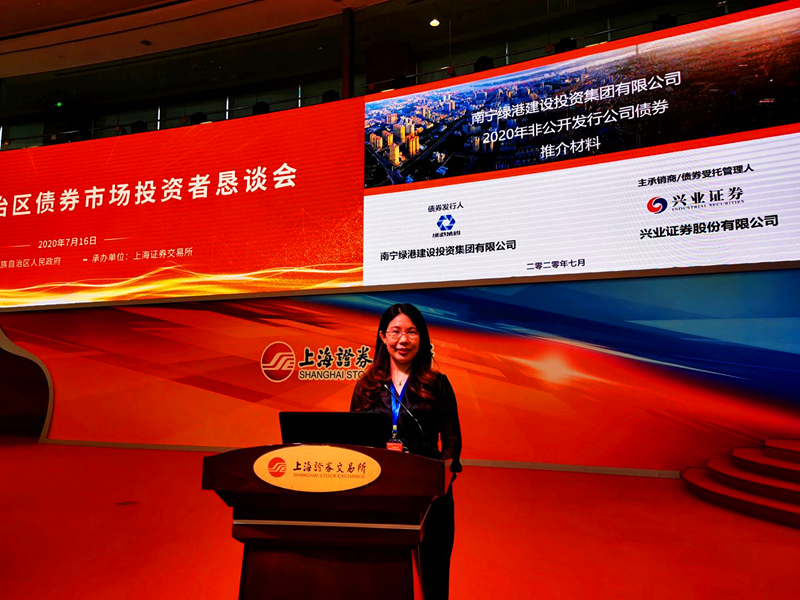 綠港集團(tuán)財務(wù)總監(jiān)關(guān)月娥代表南寧市債券銷售路演企業(yè)介紹了南寧綠港2020年非公開發(fā)行公司債券的項目情況:該期債券的發(fā)行主體為綠港集團(tuán),發(fā)行規(guī)模不超過15億元,期限不超過5年,目前已報上海證券交易所審核,計劃在今年三季度擇機(jī)發(fā)行,已受到眾多機(jī)構(gòu)投資者的廣泛關(guān)注。