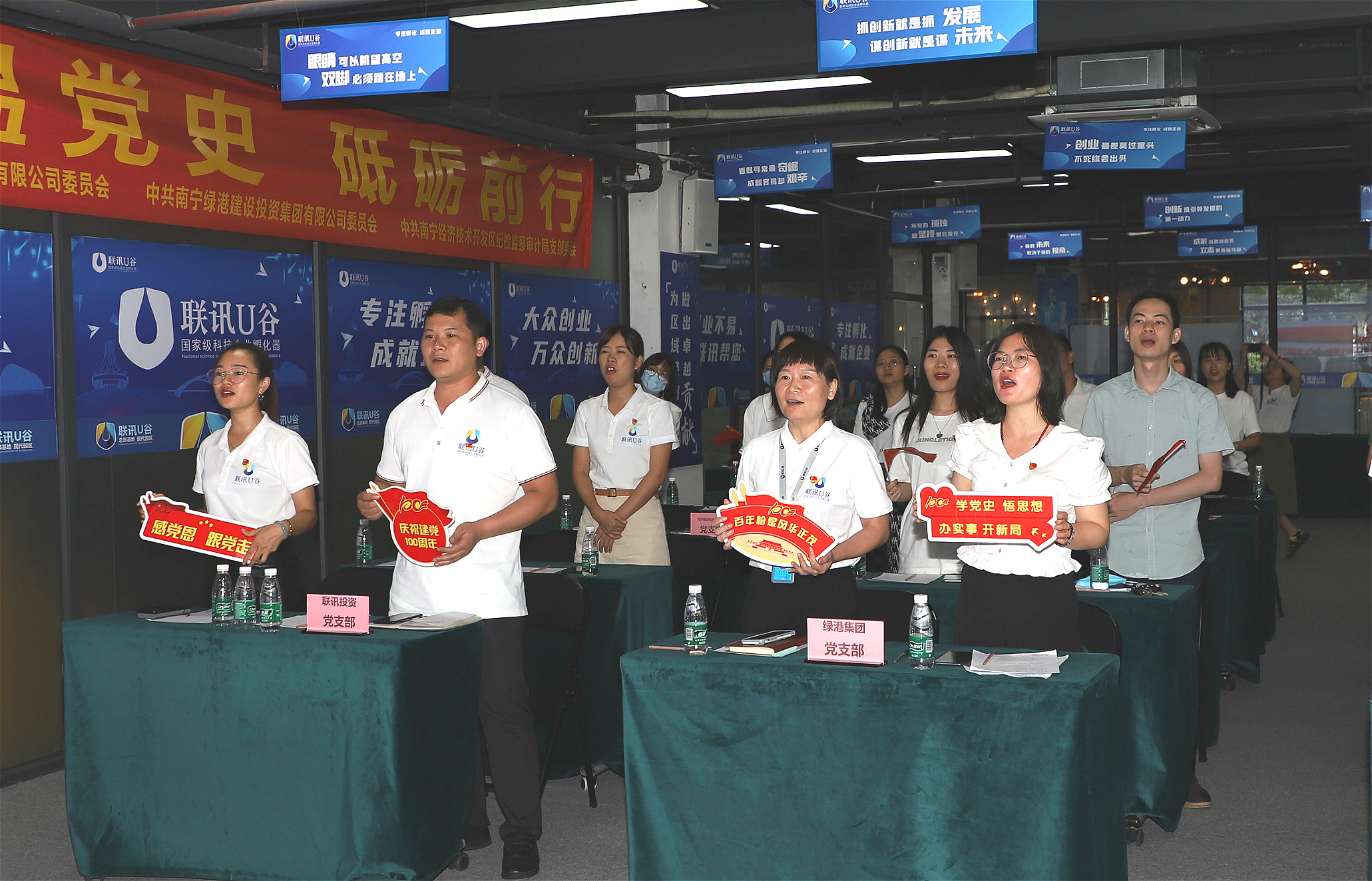 為慶祝建黨100周年,繼承和發(fā)揚(yáng)黨的優(yōu)良傳統(tǒng)和作風(fēng),扎實(shí)推進(jìn)黨史學(xué)習(xí)教育,推動(dòng)學(xué)習(xí)教育走深走實(shí),5月26日,綠港集團(tuán)黨委、廣西聯(lián)訊黨委、南寧經(jīng)開(kāi)區(qū)紀(jì)檢監(jiān)察審計(jì)局黨支部聯(lián)合舉辦重溫黨史 砥礪前行”主題黨建共建活動(dòng),綠港集團(tuán)、廣西聯(lián)訊、南寧經(jīng)開(kāi)區(qū)紀(jì)檢監(jiān)察審計(jì)局的黨員代表、發(fā)展對(duì)象、入黨積極分子共35人參加了活動(dòng)。