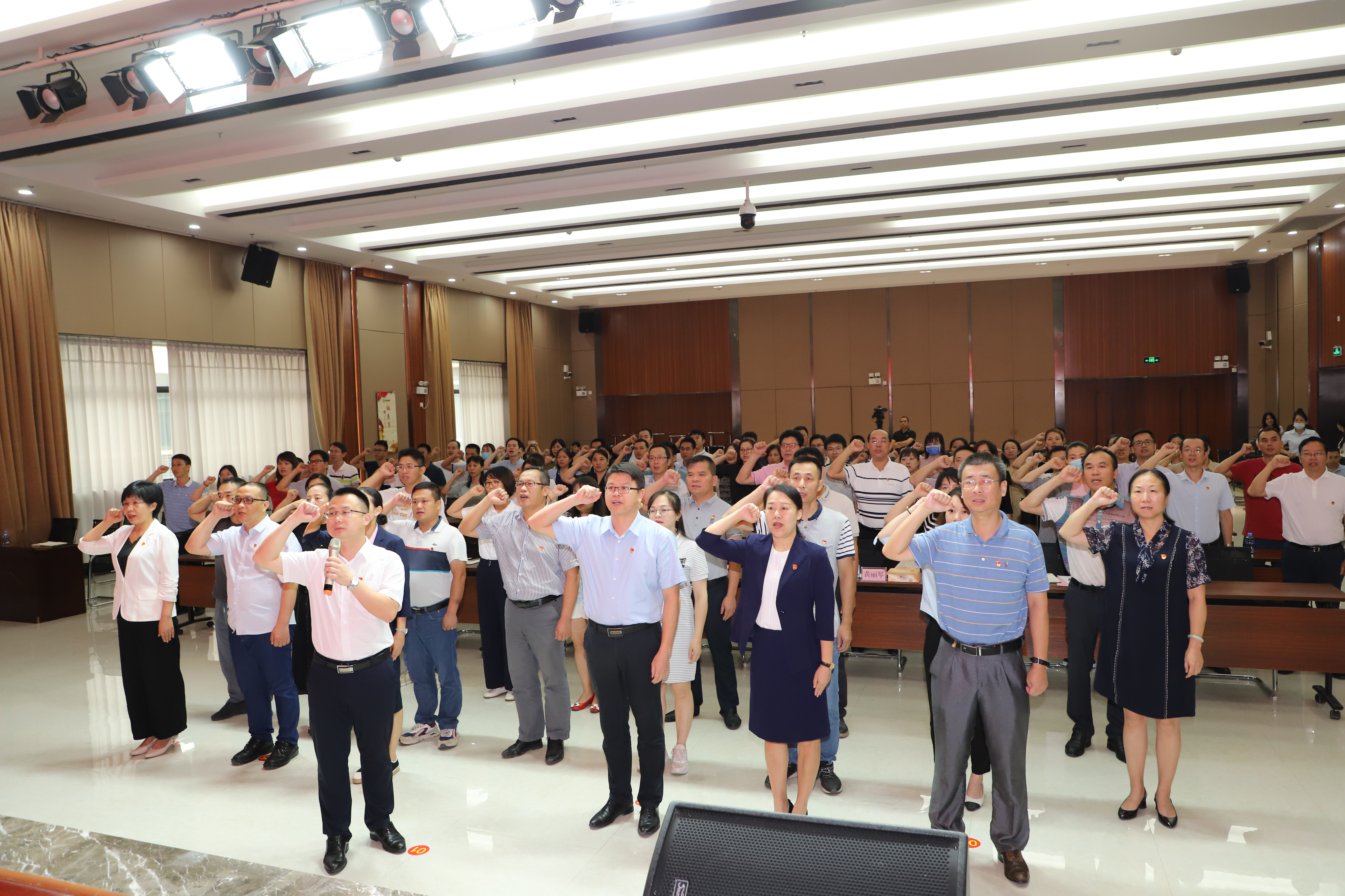 “我志愿加入中國共產(chǎn)黨,擁護黨的綱領(lǐng),遵守黨的章程,履行黨員義務(wù)……”迎著黨旗、舉起右拳,在集團黨委書記、董事長龔國強的帶領(lǐng)下,綠港集團7名新入黨黨員莊嚴地宣讀了入黨誓詞、98名老黨員同志重溫了入黨誓詞,大家在入黨誓詞中回顧初心,銘記宗旨,接受了一次心靈的洗禮。