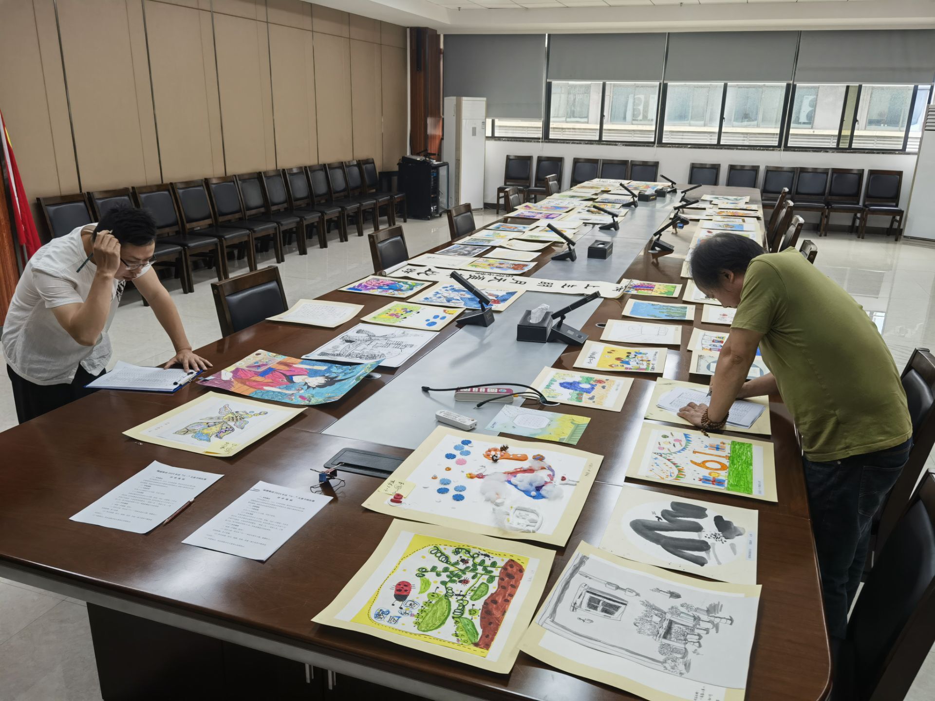 為了確保比賽的公正性和專業(yè)性,綠港集團(tuán)創(chuàng)新性地采用了現(xiàn)場(chǎng)與遠(yuǎn)程相結(jié)合的評(píng)審模式,特邀專業(yè)評(píng)委老師、學(xué)生評(píng)委組成評(píng)審團(tuán)。部分無法親臨現(xiàn)場(chǎng)的評(píng)委遠(yuǎn)程參與了作品評(píng)審過程,與現(xiàn)場(chǎng)評(píng)委一同對(duì)參賽的65幅作品從繪畫主題、構(gòu)圖完整、色彩和諧、作品感染力和創(chuàng)作力等方面對(duì)作品進(jìn)行細(xì)致地考量打分,確保每一幅作品都能得到公平且專業(yè)的評(píng)價(jià)。經(jīng)過多輪嚴(yán)格篩選,最終從兩個(gè)年齡段組別(3-6歲、7-12歲)中評(píng)選出了共計(jì)14個(gè)獎(jiǎng)項(xiàng)的得主,包括每個(gè)組別的一等獎(jiǎng)1名、二等獎(jiǎng)2名、三等獎(jiǎng)4名。