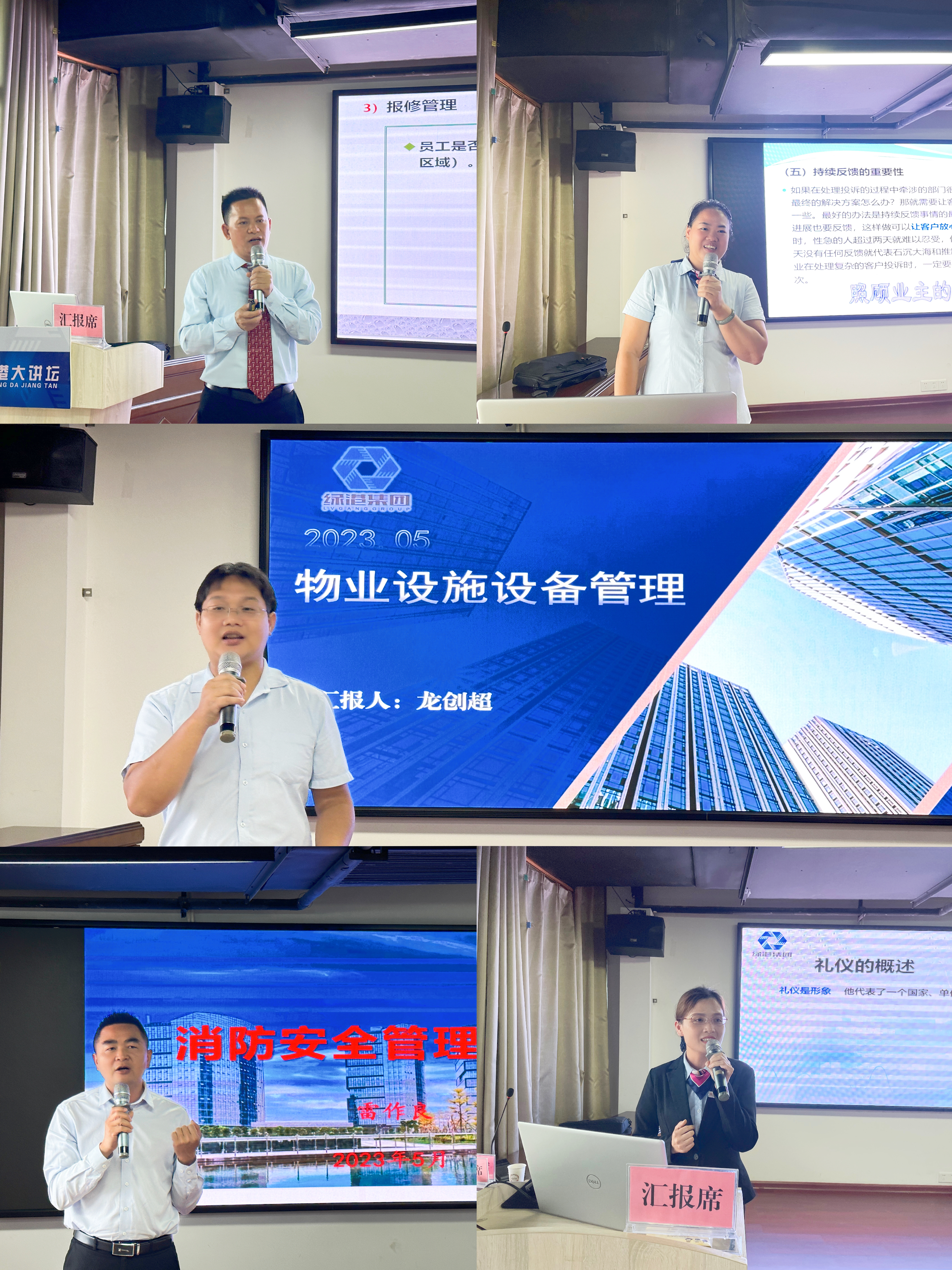 匯報會上,學(xué)員們分別結(jié)合個人的日常學(xué)習(xí)體會、感受,對各自在項(xiàng)目管理的所見所聞、所思所想逐一進(jìn)行整理,從所學(xué)習(xí)的物業(yè)服務(wù)意識、催費(fèi)技巧、服務(wù)禮儀、設(shè)施設(shè)備管理、安全管理等方面制作成PPT并進(jìn)行了詳細(xì)的匯報和分享,體會深刻,學(xué)習(xí)感受頗深,達(dá)到了 “一人學(xué)習(xí),眾人受益,共同提升”的目的,會場掌聲不斷,大家受益匪淺。來自銀凱孵化園物業(yè)服務(wù)中心的客服經(jīng)理付正豪獲得了匯報會第一名的好成績,他表示會進(jìn)一步明晰目標(biāo)任務(wù),抓好學(xué)習(xí)成果轉(zhuǎn)化,以學(xué)促知、以知促行,為項(xiàng)目日常管理工作提供切實(shí)有效的幫助,與同事們一起為公司的健康發(fā)展貢獻(xiàn)綿薄之力。